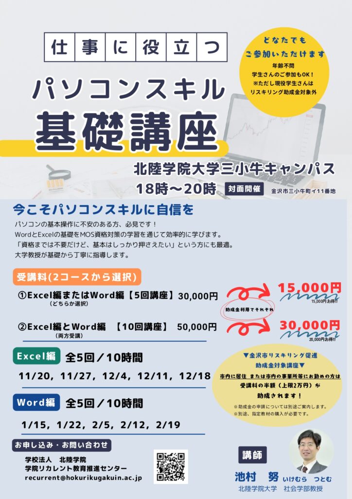 【学院リカレント教育推進センターより】 仕事に役立つパソコンスキル基礎講座のご案内 「WordやExcel...