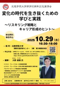 2030年の大学開学80周年に向けて記念講演会が開催されますので、ぜひご参加くださいませ。