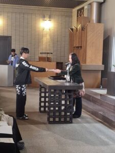 先週行われた学祭『栄光祭』の開会礼拝の後に